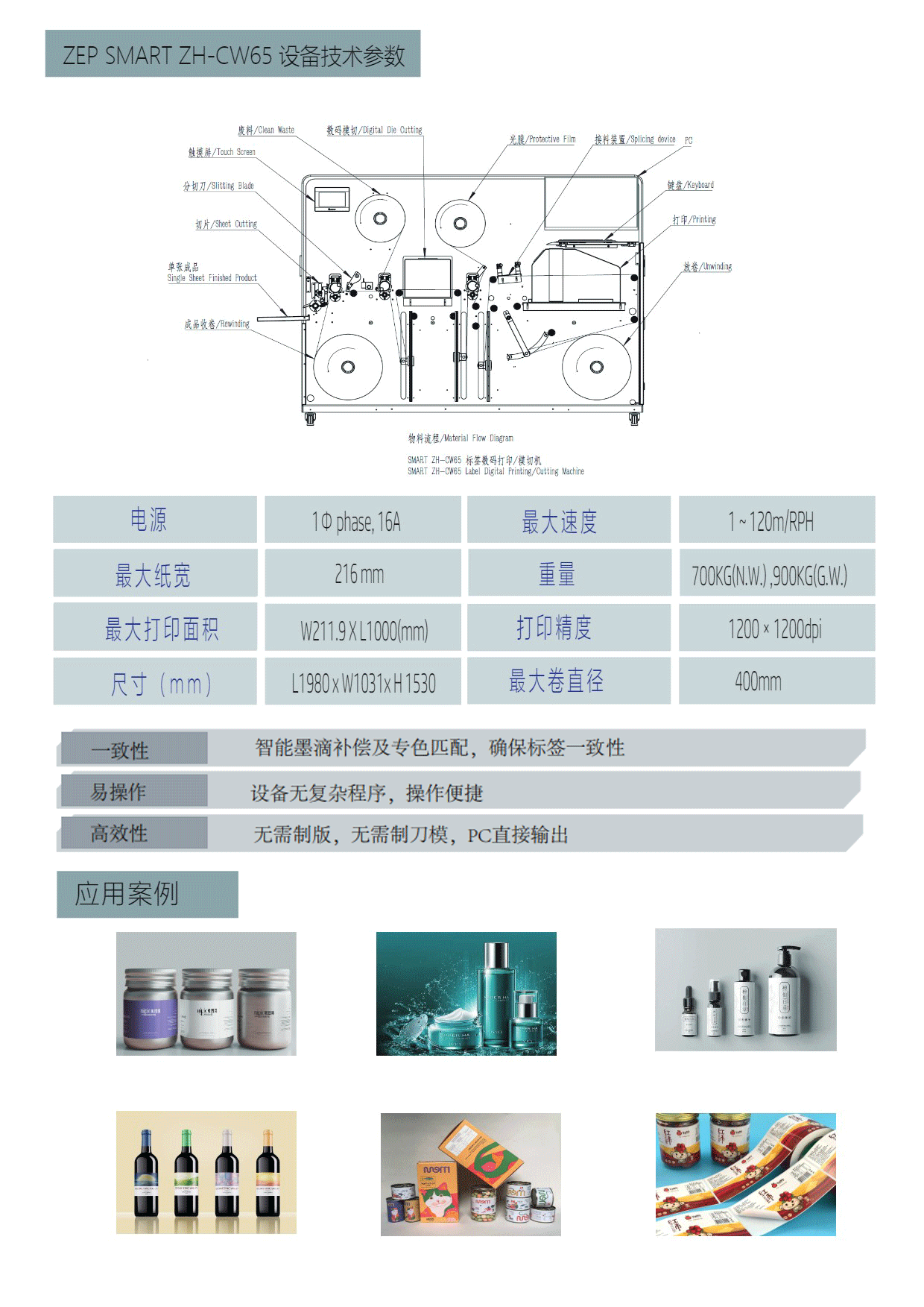 • 集打印,模切,分条,排废,裁张,收卷于一体