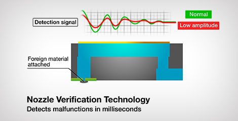 爱普生喷嘴检测系统可以对微压电应力反馈进行监控,从而在瞬间感应喷嘴故障情况。这一系统在印刷过程中会自动运作,从而提升生产率及机器的可靠性。