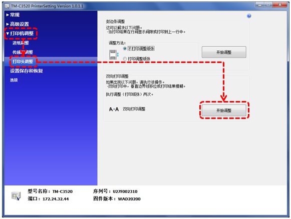 1.打开电脑的控制面板-->设备和打印机-->用鼠标右键单击该打印机的图标-->打印机属性-->首选项-->维护与实用工具-->打印机设置-->打印机调整-->打印头调整-->双向打印调整-->开始调整(如图2)